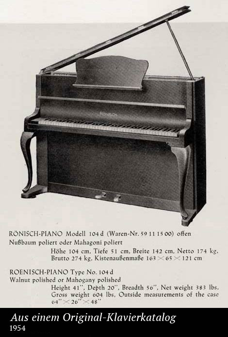 1948 werden die ersten 13 Klaviere gebaut und das erste RÖNISCH- Klavier nach dem 2. Weltkrieg auf der Leipziger Frühjahrsmesse zusammen mit einem Wohnzimmer ausgestellt.